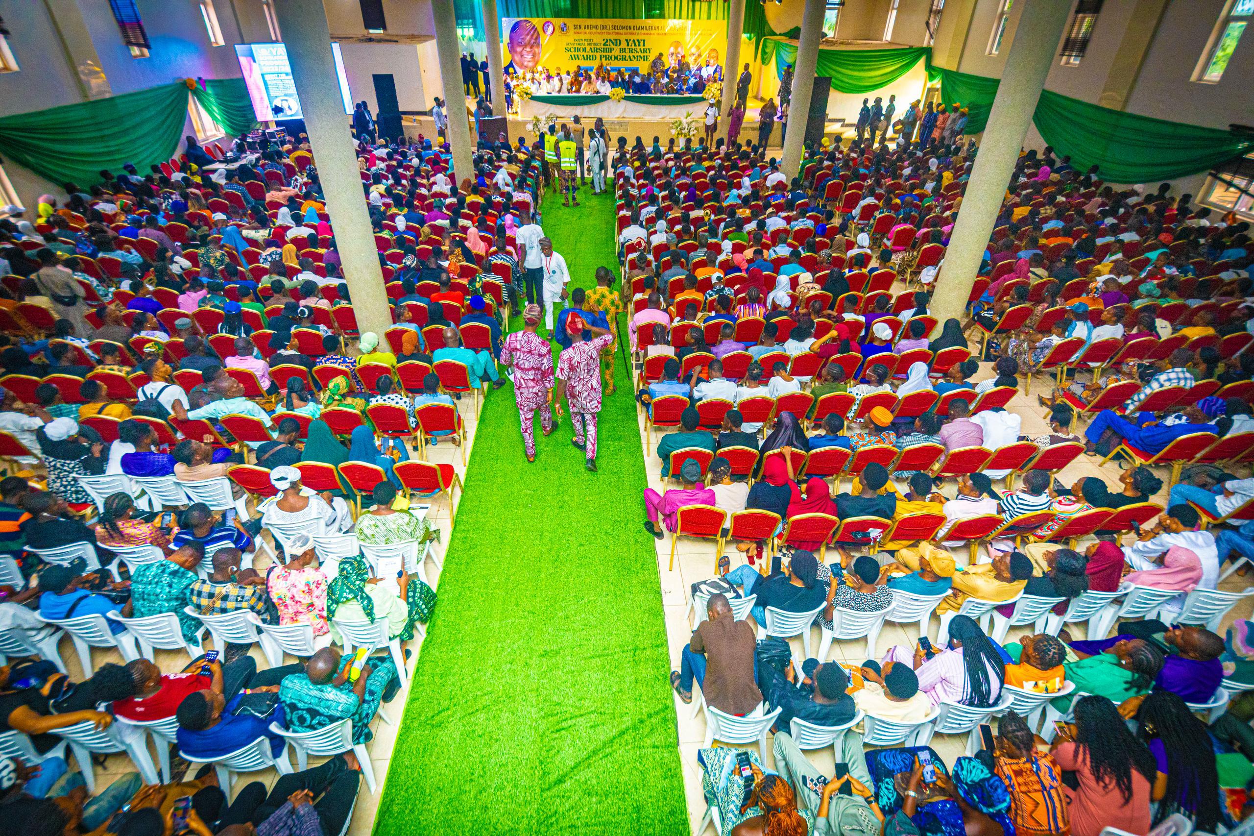 Today, I fulfilled yet another campaign promise is facilitating scholarship and bursary awards of N200,000 and N100,000 respectively for undergraduates of tertiary institutions. A total number of 3892 students benefited in this second edition as against 1700 of the first edition. I recieved appreciative awards from parents and commendations from beneficiaries of the first edition. Among dignitaries at the occasion were Dr. Kunle Salako, Minister of State for Health, Professor Tope Popoola, Chairman of YAYI Scholarship and Bursary Board, Deputy Speaker of Ogun State House of Assembly, Rt. Hon Bolanle Ajayi, Hon Samuel Adejare and other top state and federal government officials .Effective Representation continues