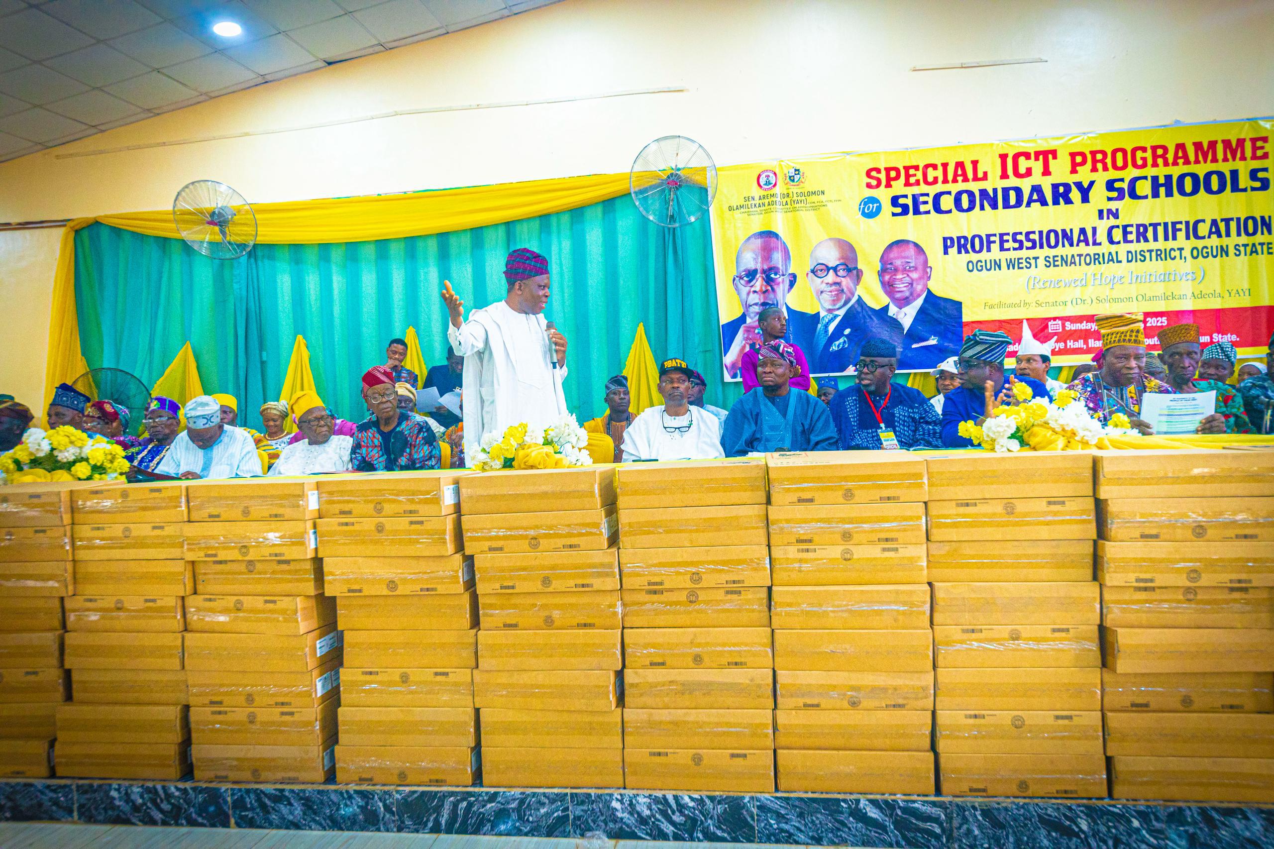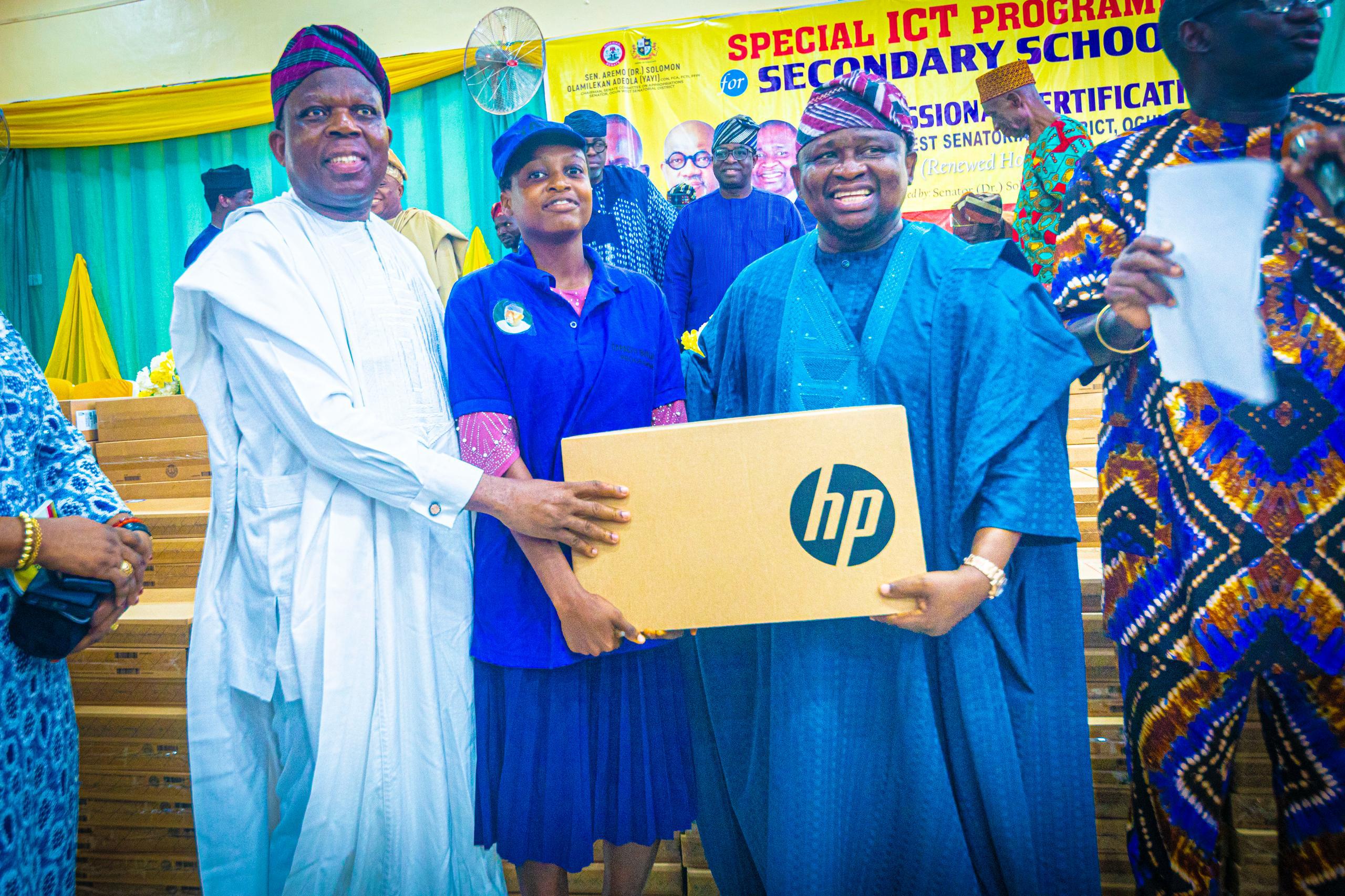 Catch Them Young: Another educational initiative for the future generation. I facilitated training in computer appreciation and applications for 700 secondary students from my senatorial district. At the end of the training, the students were certified in computer appreciation and each giving laptop and transportation. It is hope that owning a personal computer will propel them to the profitable world of Information, Communications and Technology, ICT. Effective Representation Continues