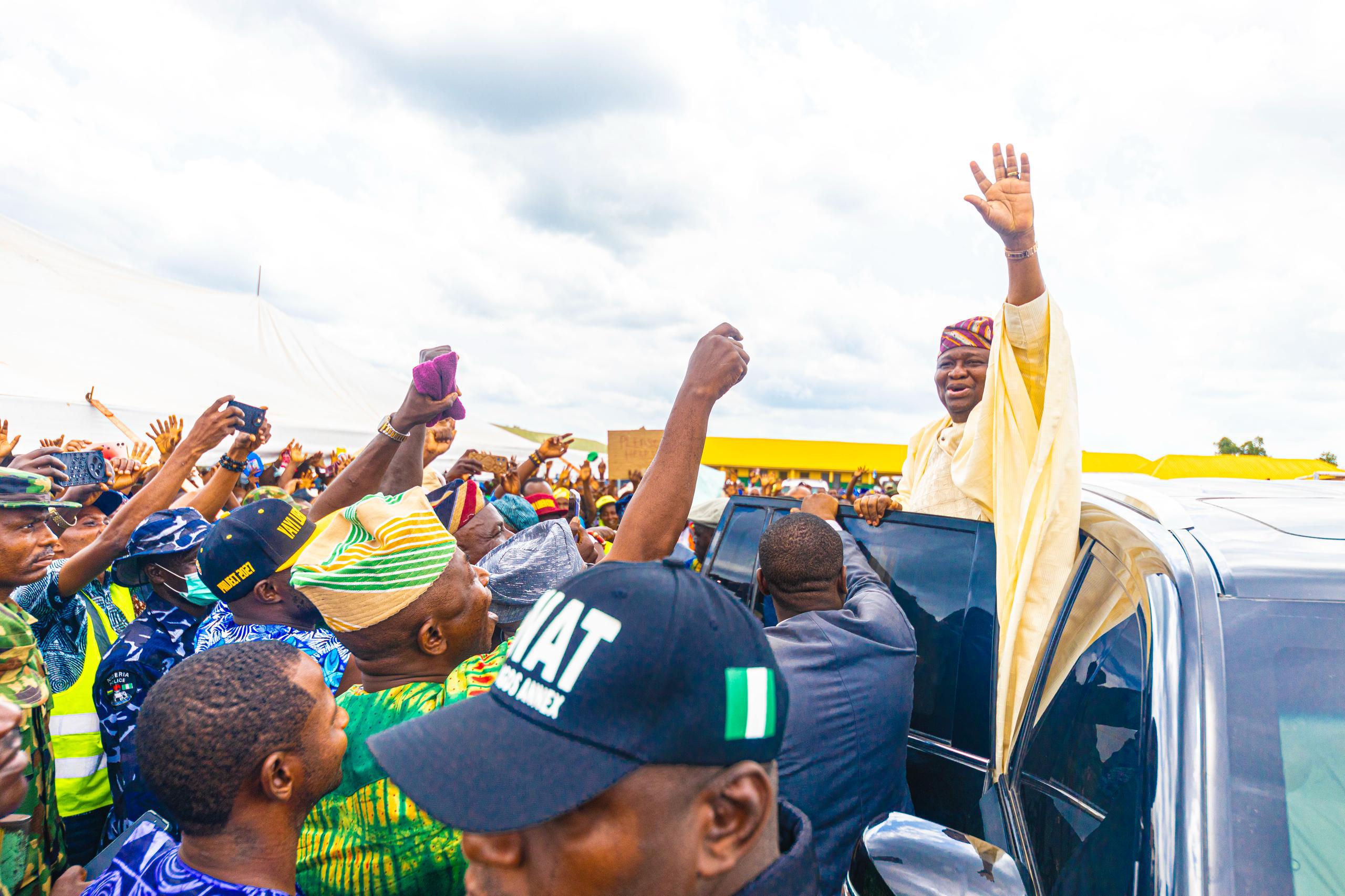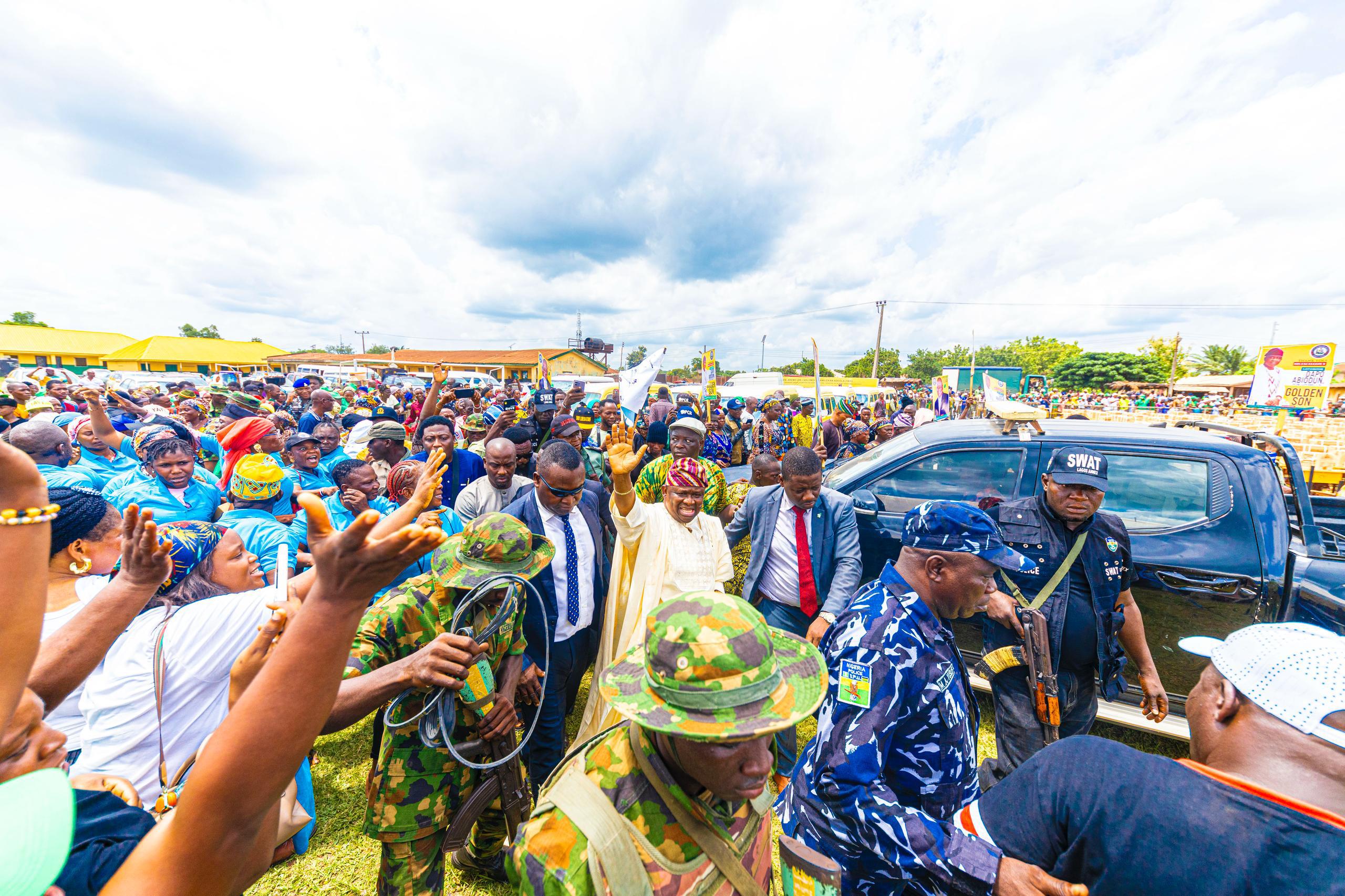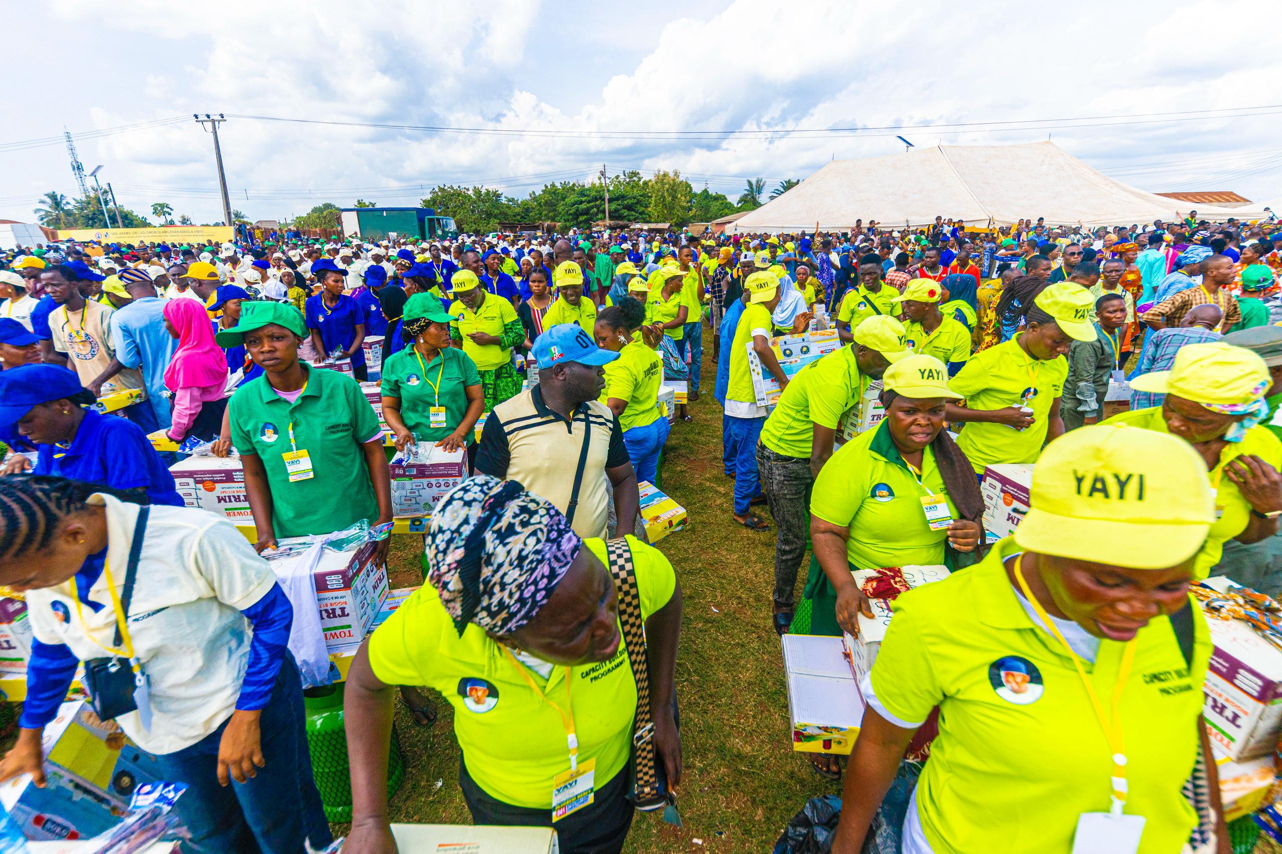 Another joyous occasion for me as I continued with the Second Edition of my Town Hall Meeting/ Mega Empowerment and Thank You Tour in another Local Government, Ipokia. The event which took place at Custom Barrack Play Field, Idiroko, had many political leaders as well as beneficiaries of empowerment programme. Among items distributed to beneficiaries were mini buses, Tricycles,Sewing Machines,Vulcanizing Machines, Grinding Machines, Make Up kits, Confectionary Equipment, Embroidery Machines, Deep Freezers while others were trained in Agric-Value Chain, Entrepreneurship with cash grants given to beneficiaries.