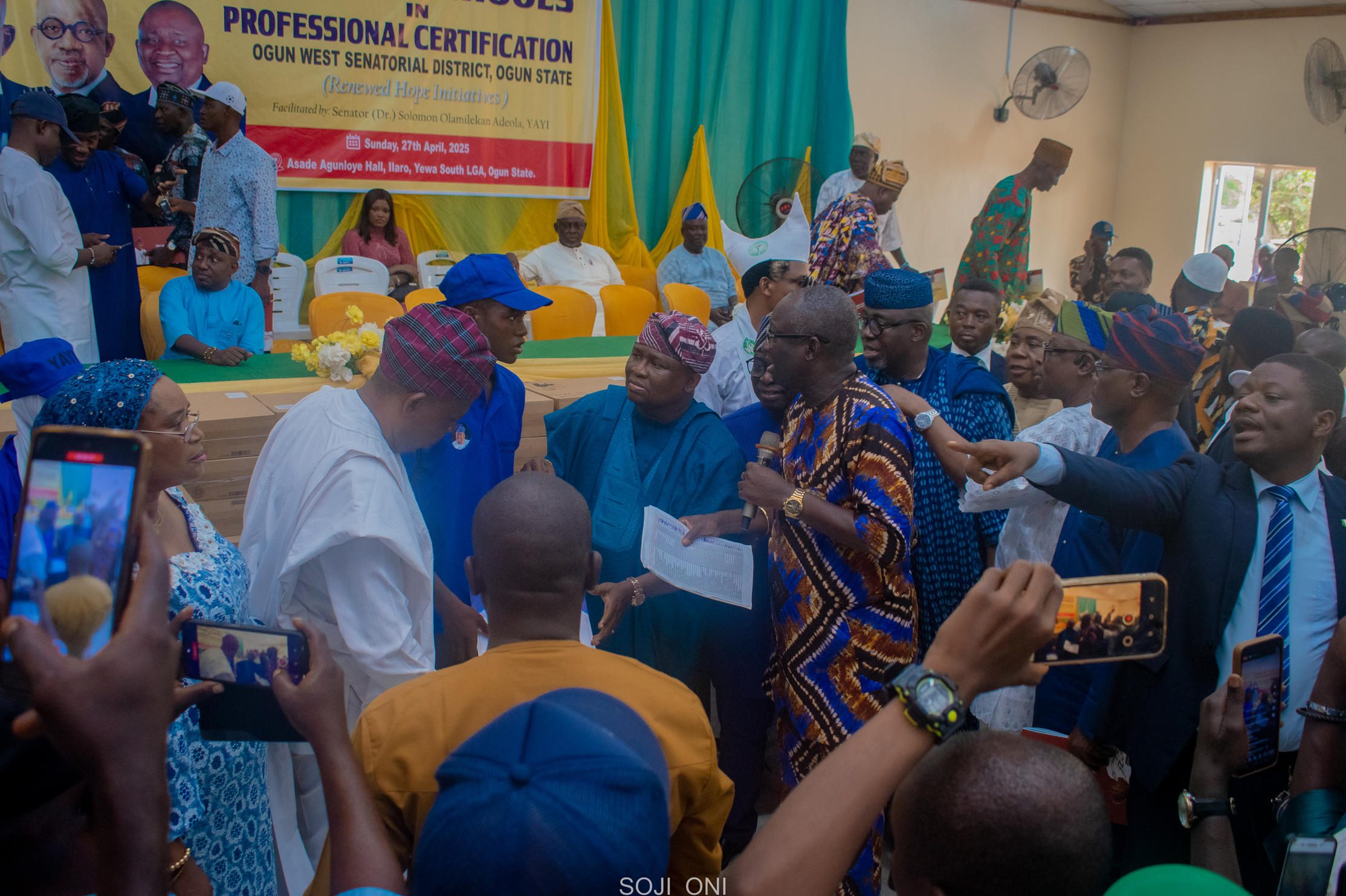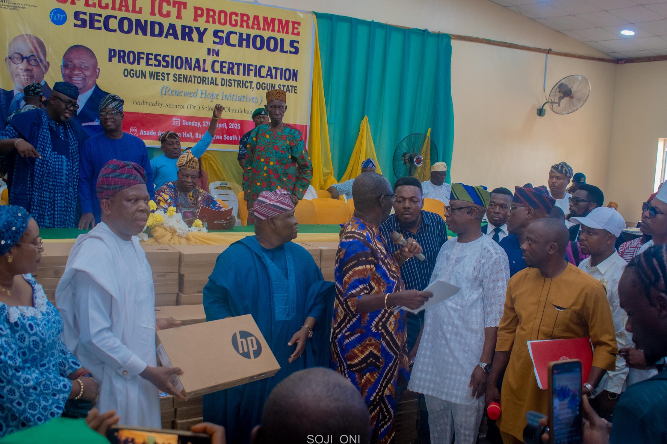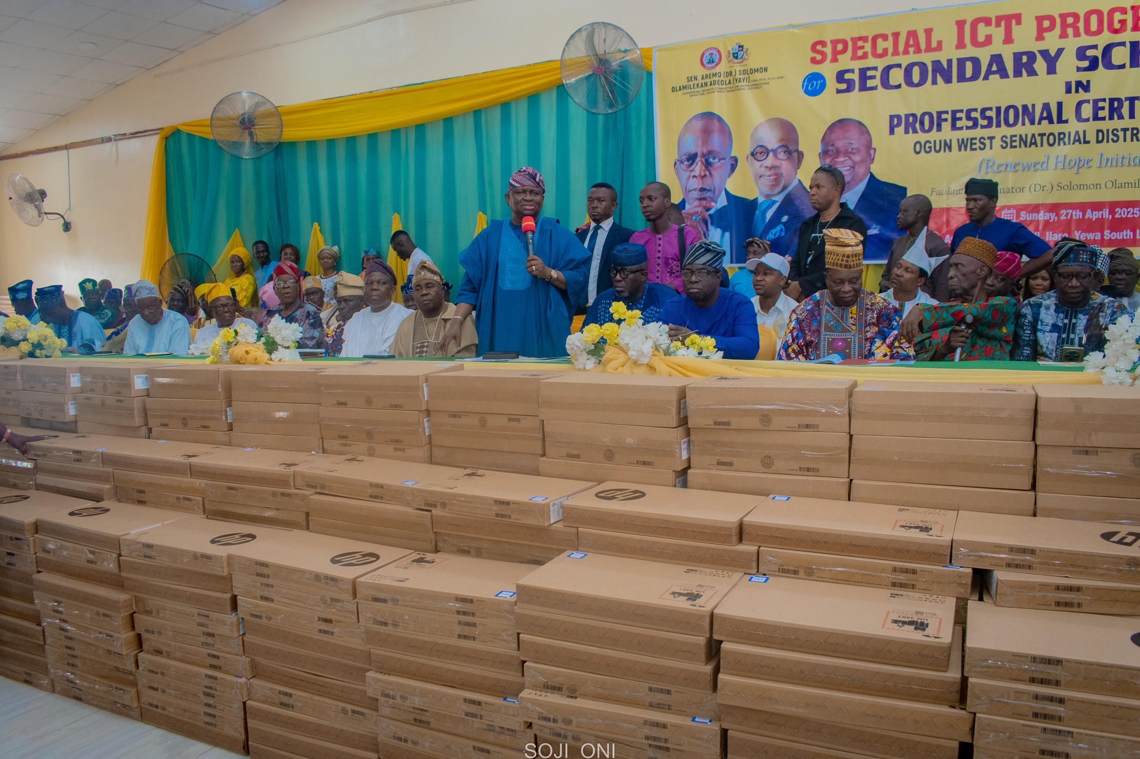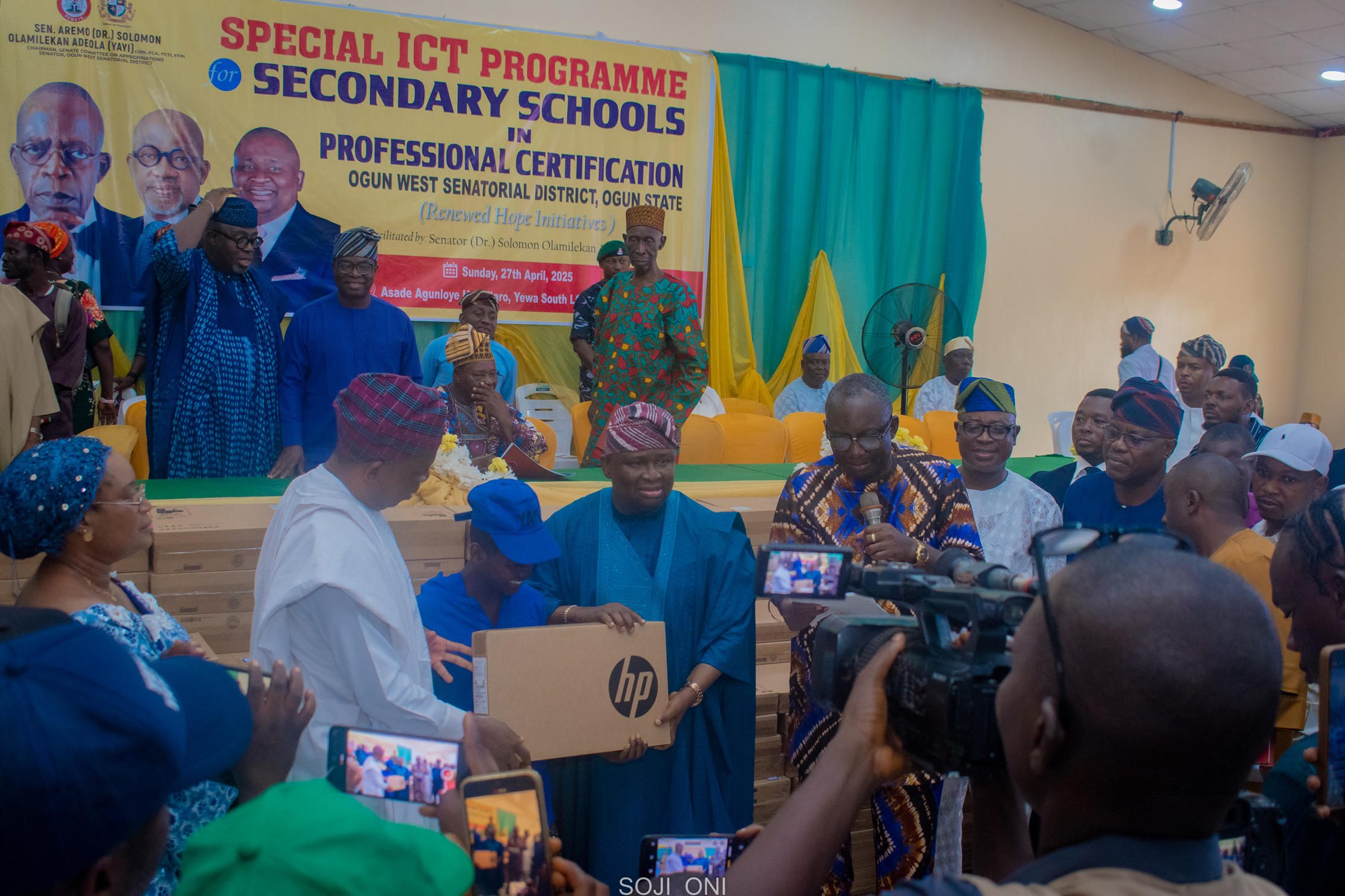 Sen. Adeola’s “Catch Them Young” initiative delivered hands-on computer appreciation and applications training to secondary students across Yewa South LGA. Graduates received certificates, personal laptops, and transport support—laying the foundation for digital literacy and future ICT opportunities. Effective representation continues.
